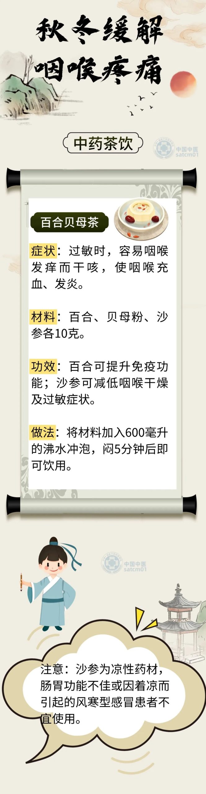 【健康养生】秋冬嗓子干、咽喉痛?4款茶饮、2个穴位,轻松缓解咽喉不适 秋冬季节气候多变,容易因过敏、感冒而喉咙痛,天气转凉后吃刺激食物如麻辣火锅,也会引起咽喉痛。此外,平时如过度使用声带,也会造成咽喉痛。针对不同原因引起的咽喉痛,饮用适当的茶饮,按摩对应穴位,可缓解疼痛。 作者:admin 12345678910987654321 查看admin的所有文章。