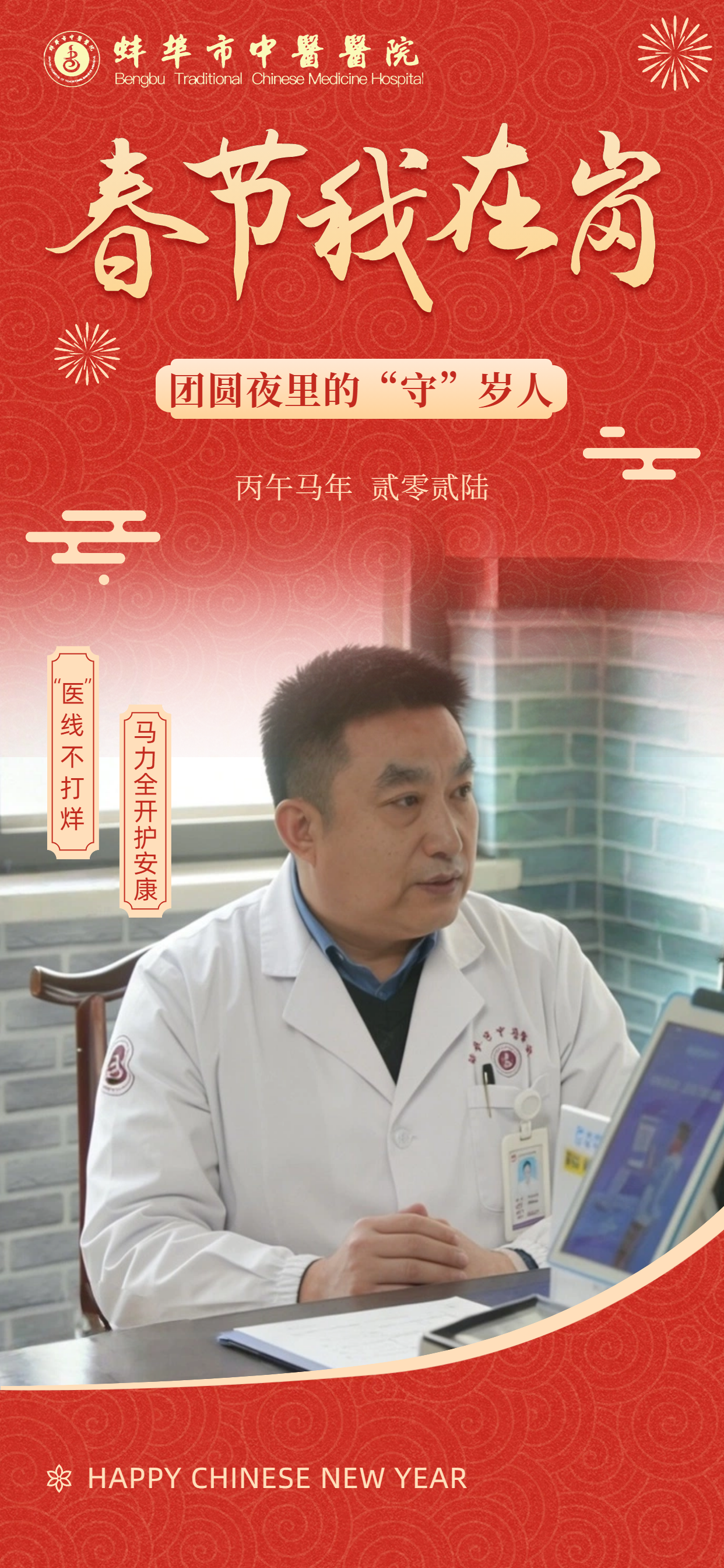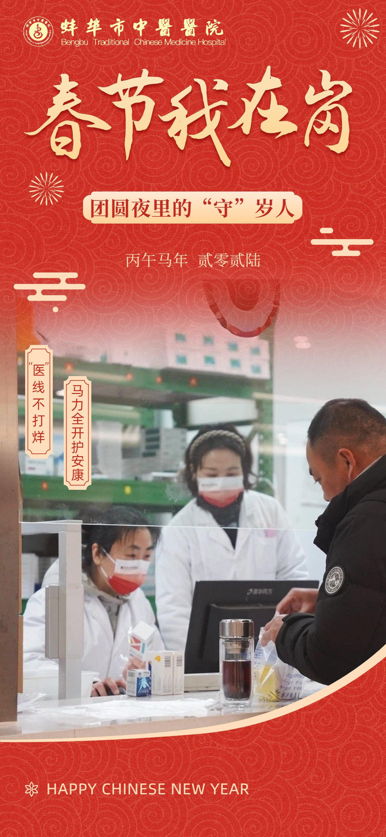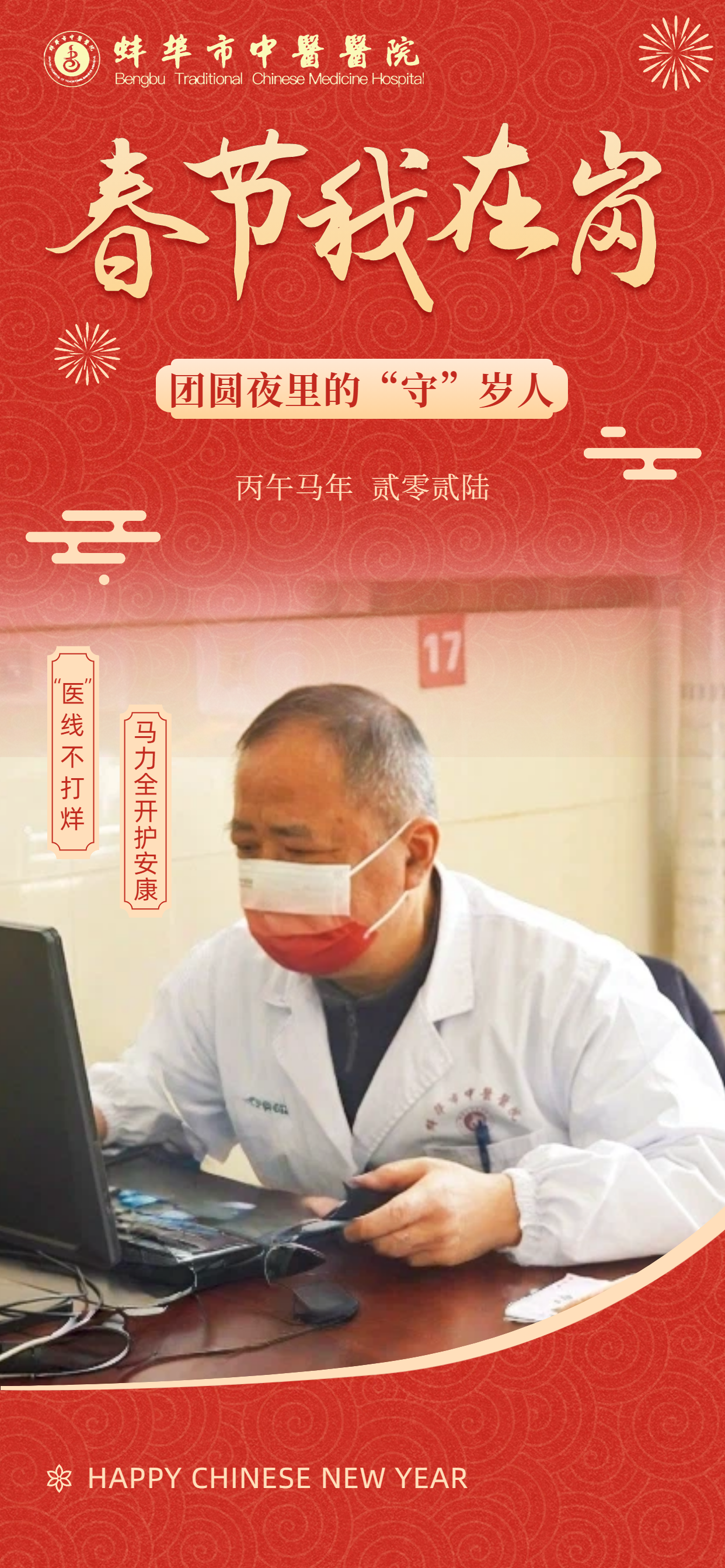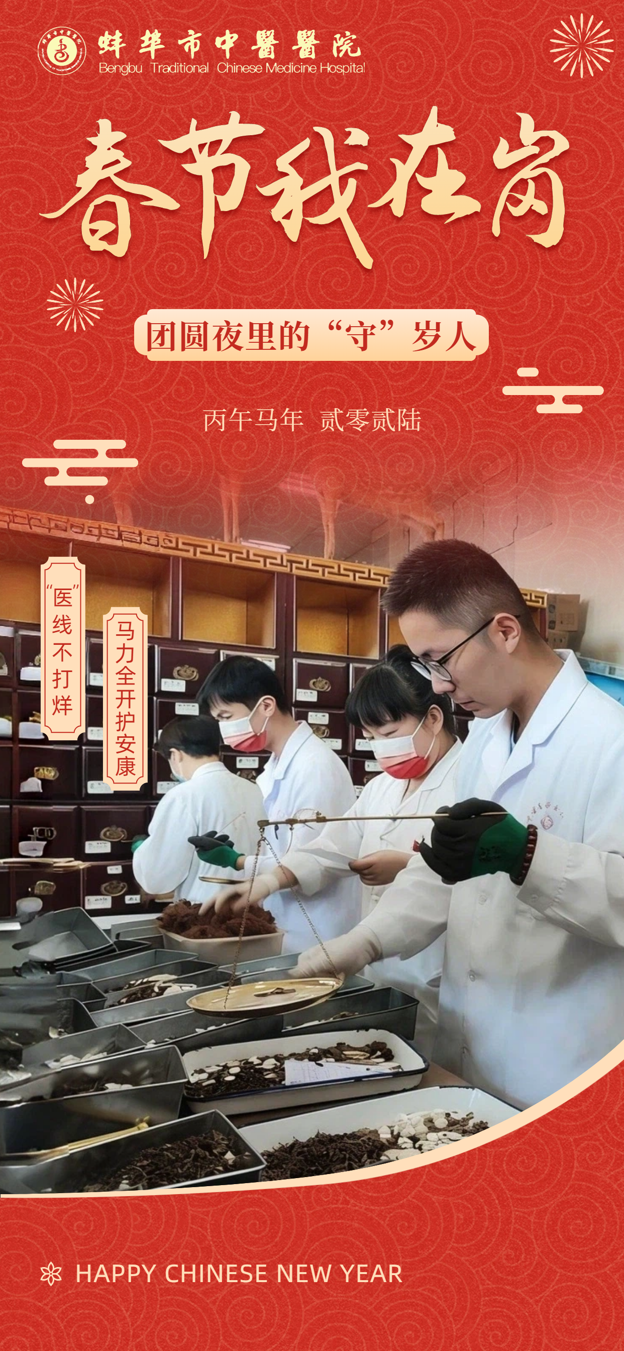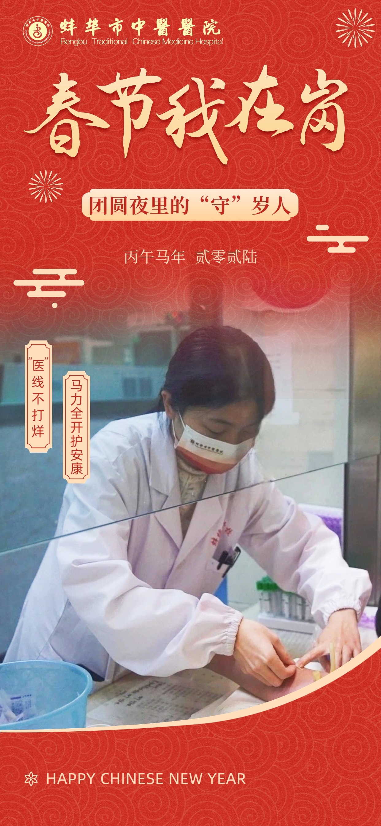 在此,向所有奋战在一线的“中医院人”致敬!愿这一份坚守,能换来千家万户的安康喜乐。祝愿全市人民在新的一年里:身体生龙活虎,生活策马奔腾,所求皆如愿,所行皆坦途,马年大吉,幸福安康!