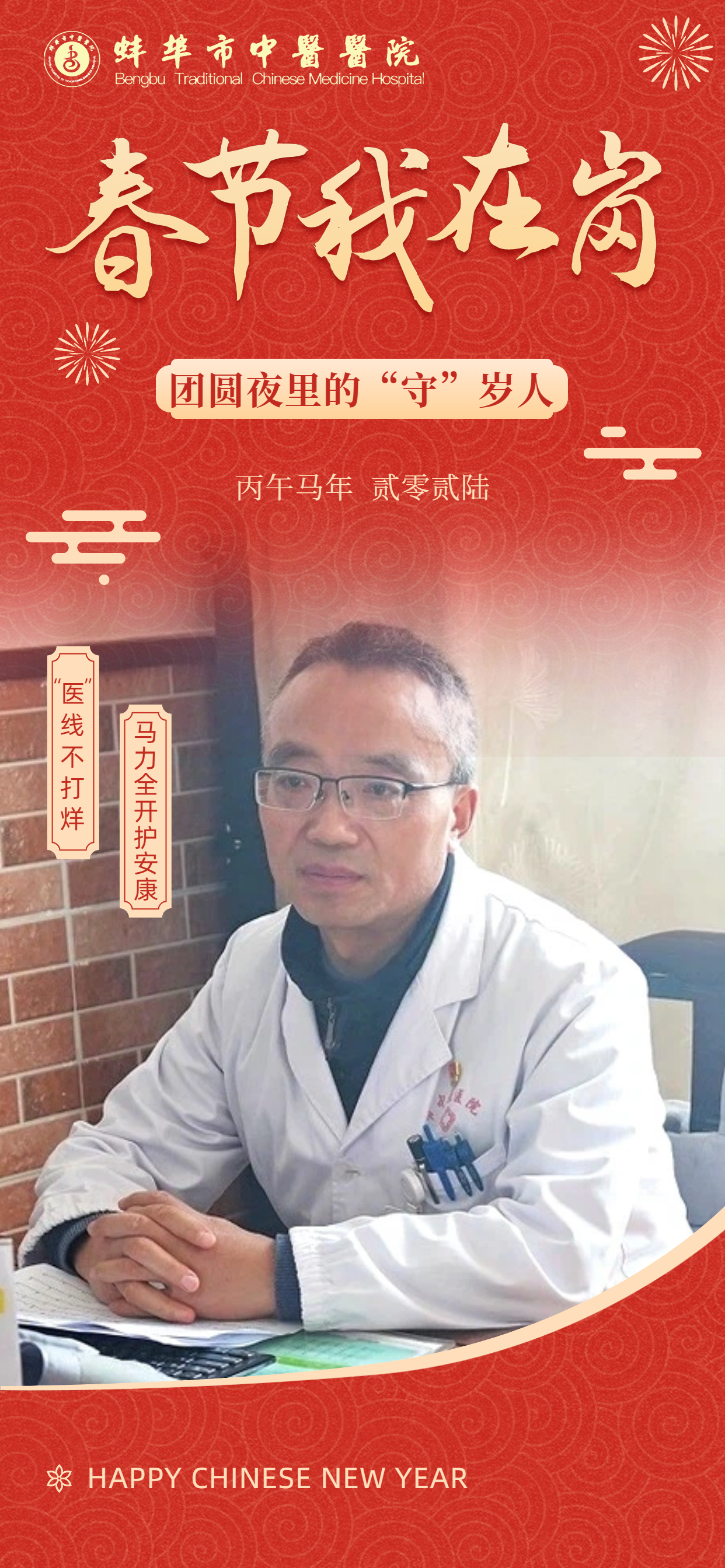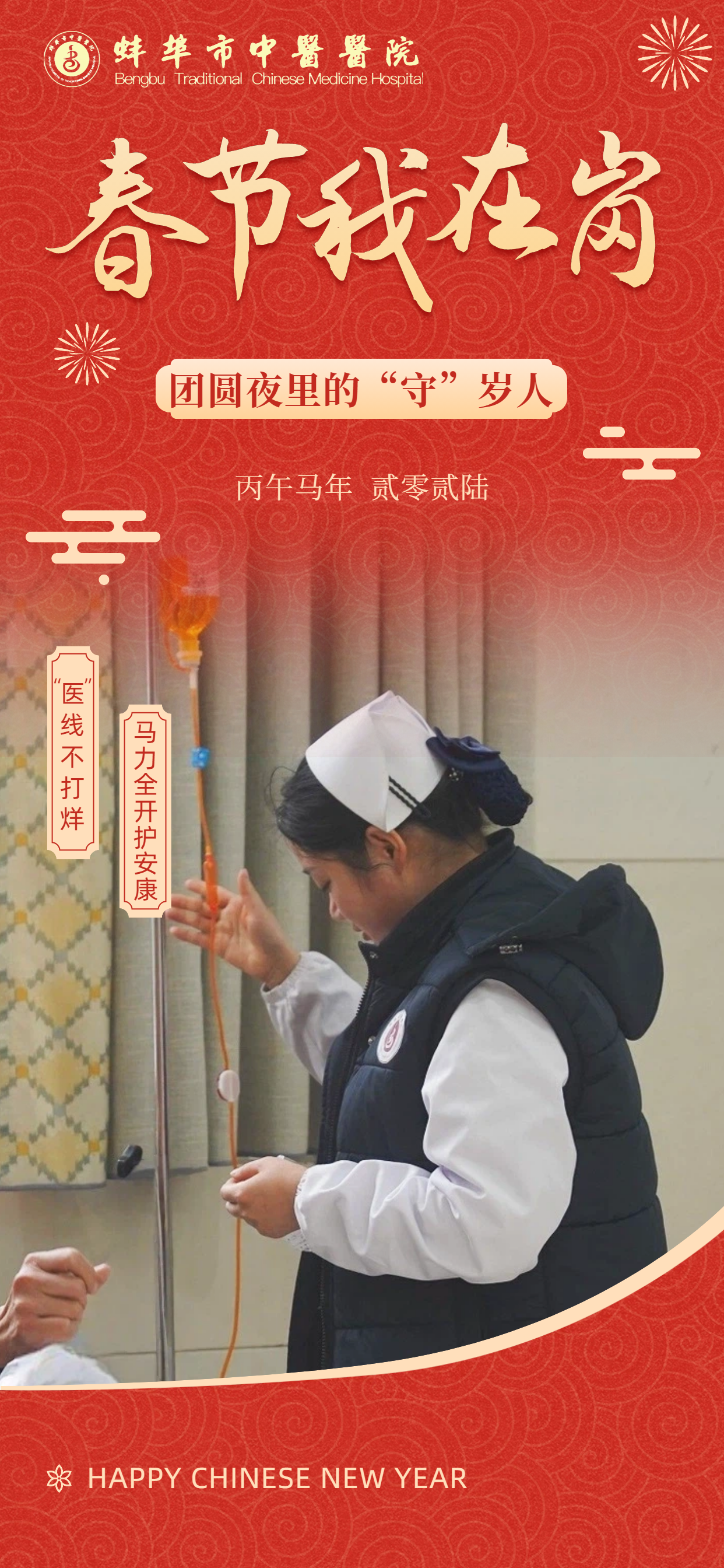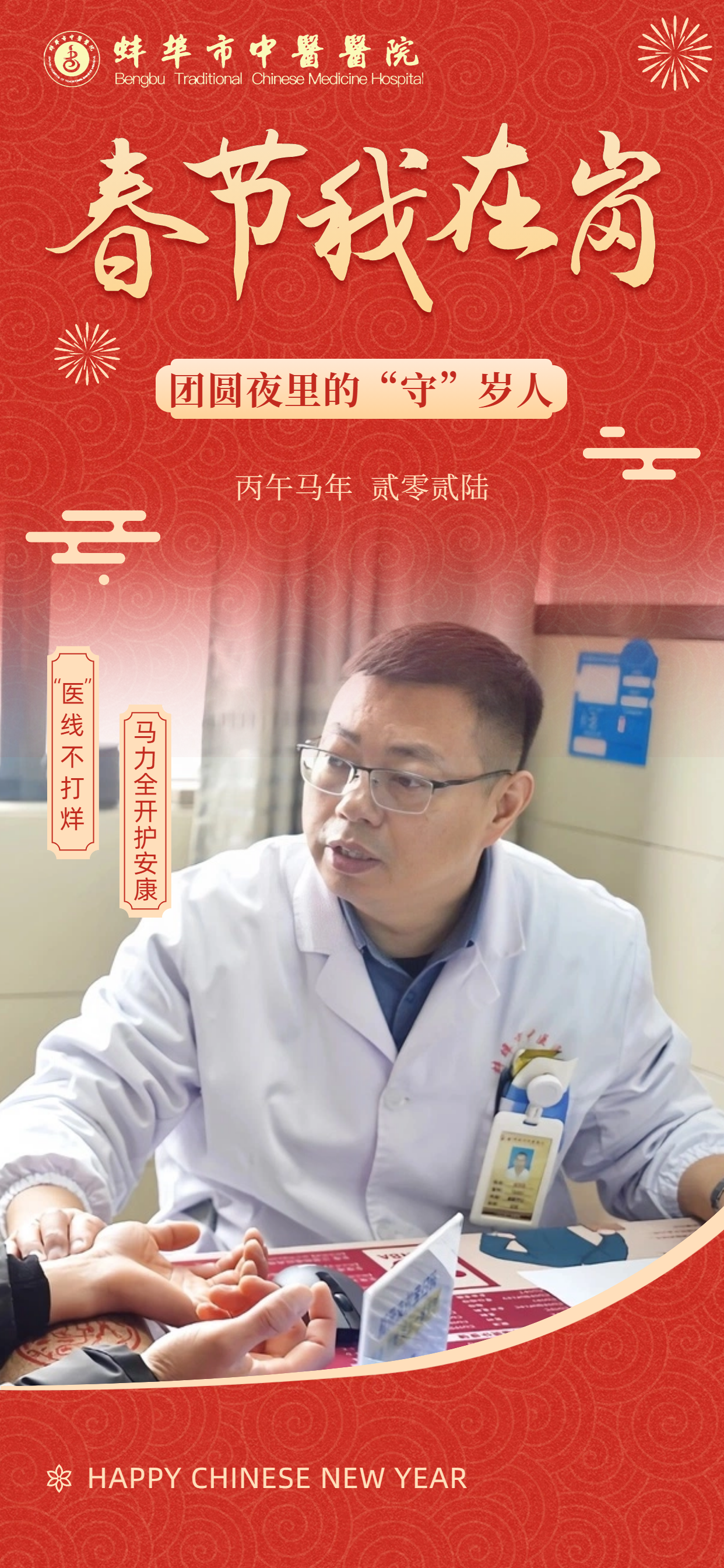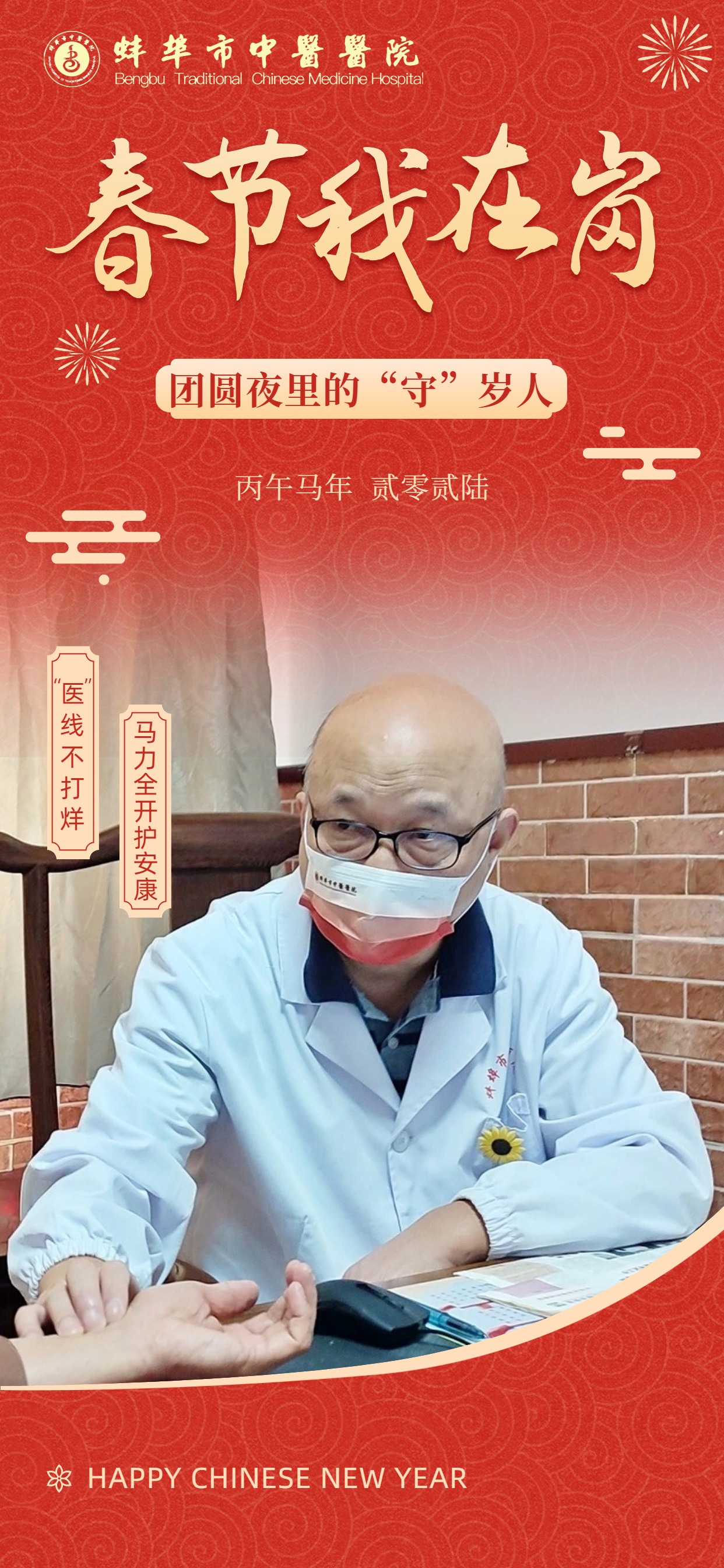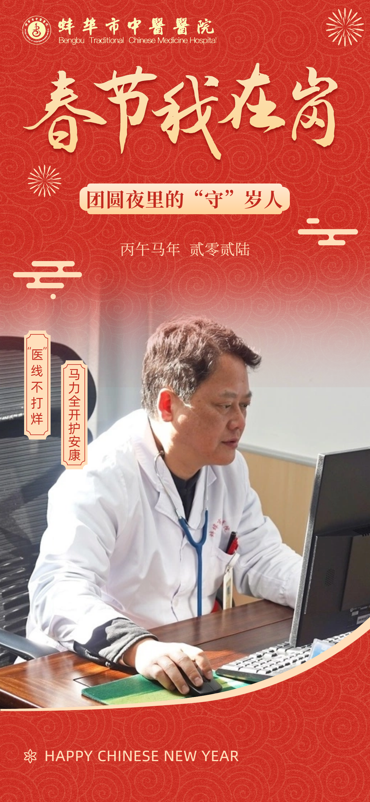 在此,向所有奋战在一线的“中医院人”致敬!愿这一份坚守,能换来千家万户的安康喜乐。祝愿全市人民在新的一年里:身体生龙活虎,生活策马奔腾,所求皆如愿,所行皆坦途,马年大吉,幸福安康!